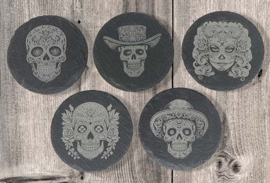 Calavera Coasters - Round Slate