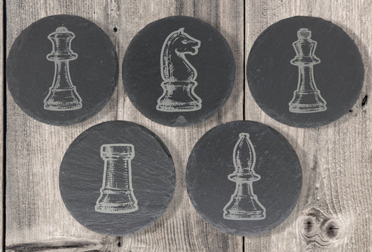Chess Coaster Set - Round Slate