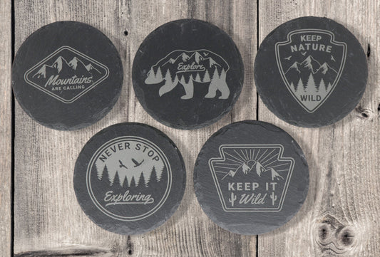 Explore Coaster Set - Round Slate