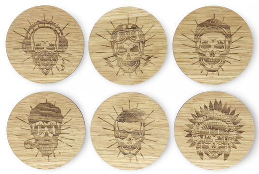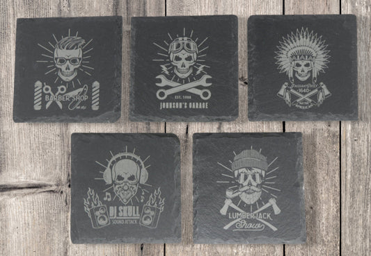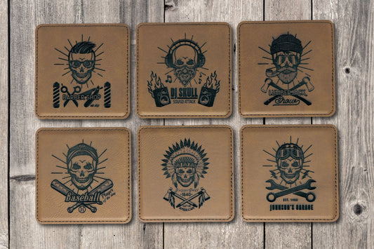 Working Skulls Square Leatherette Coaster Set - Dark Brown