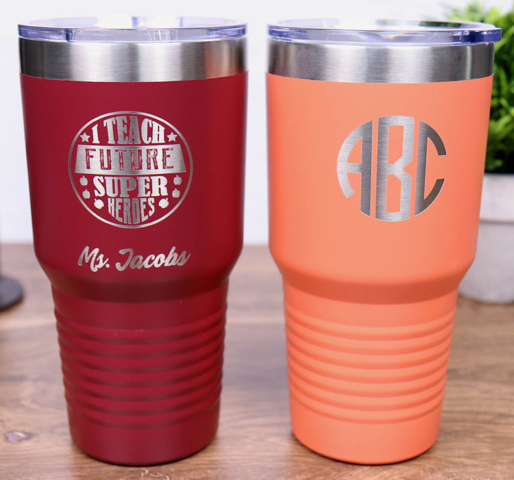 Take your hydration game to the next level with our 30-ounce insulated tumblers, designed to keep your favorite beverages hot or cold for hours. Our large capacity tumblers are perfect for those who need a drink that lasts all day, whether you're a busy professional, an outdoor enthusiast, or an athlete. Made with durable, BPA-free materials and featuring a rugged design, our 30-ounce tumblers can withstand even the toughest conditions. Personalize your tumbler with your name, initials, and more using our precision laser engraving, and make a statement with every sip. Whether you're sipping coffee, tea, or your favorite cold beverage, our insulated tumblers will keep it at the perfect temperature, and the unique design will make it stand out from the crowd.
