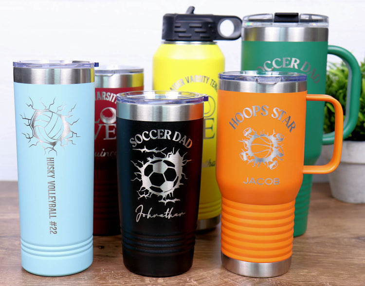Fuel your passion for the game with our Personalized Sports Tumbler Collection, where team pride meets custom craftsmanship. Laser-engraved with your name and iconic sports symbols, these tumblers let you showcase your love for the sport in style. Available in bold colors, multiple sizes, and sleek designs, our insulated tumblers keep drinks ice-cold or piping hot for hours, making them ideal for game days, gym sessions, or everyday hydration. Perfect for athletes, superfans, or as a heartfelt gift for teammates and coaches, each durable, BPA-free tumbler is a winning blend of personalization and performance. Create your sports-inspired masterpiece today and sip in victory!