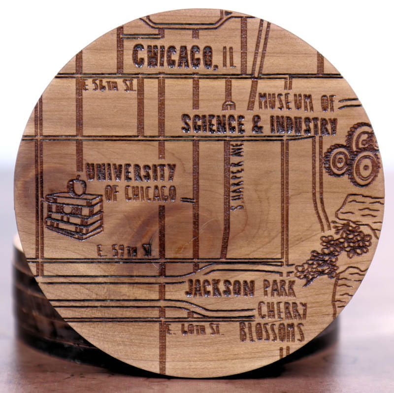 Elevate your home decor with our Chicago Illinois Solid Wood Coaster Set! Made from premium solid wood, each coaster features iconic landmarks and maps of the Windy City. Protect your surfaces in style while adding a touch of charm to any room. Comes in a set of six. Perfect for any Chicago lover!