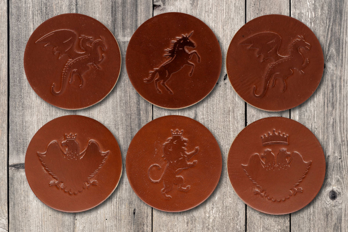 Heraldic Animals Premium Leather Coasters - Medium Brown