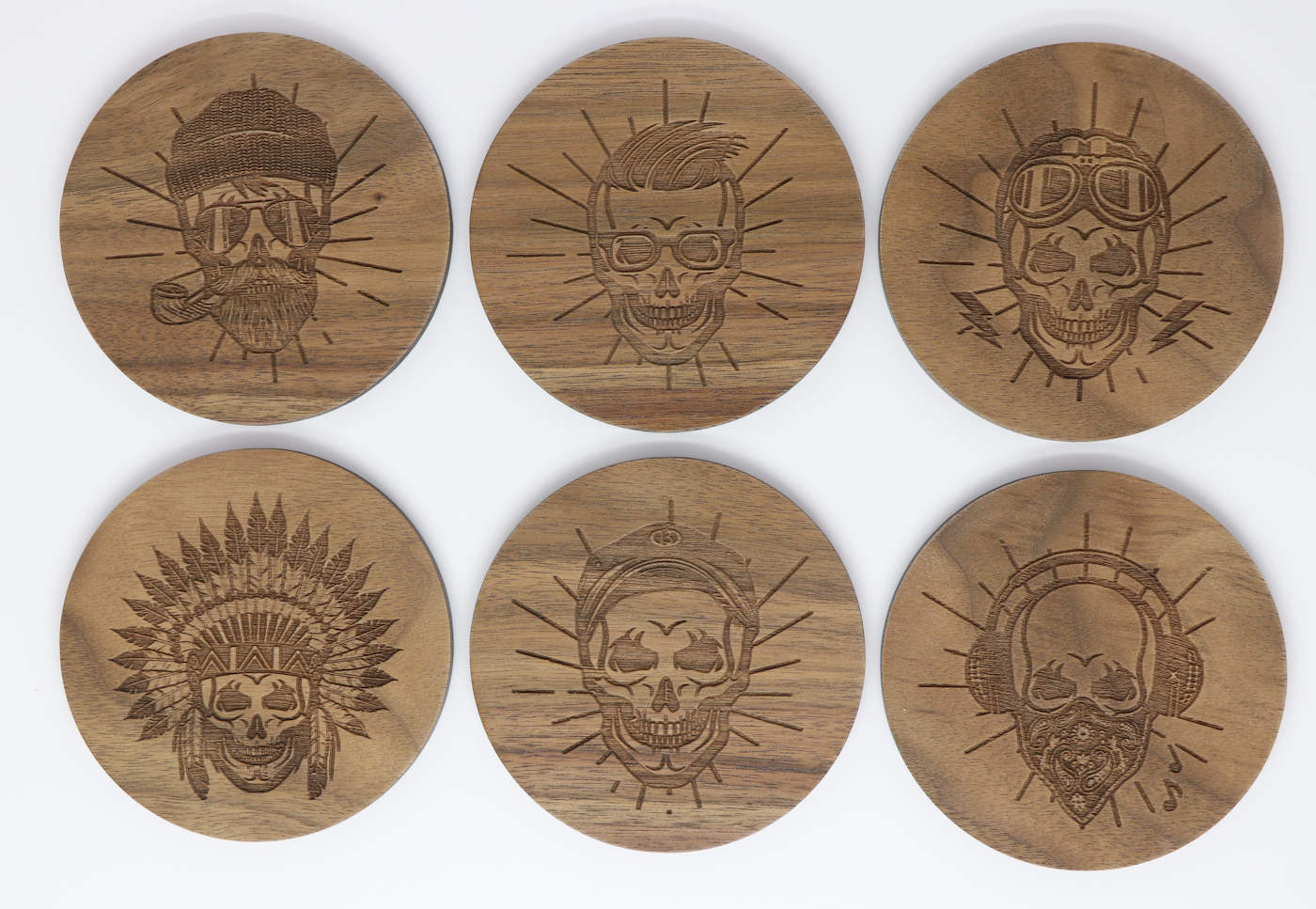 Skulls Solid Wood Coaster Set