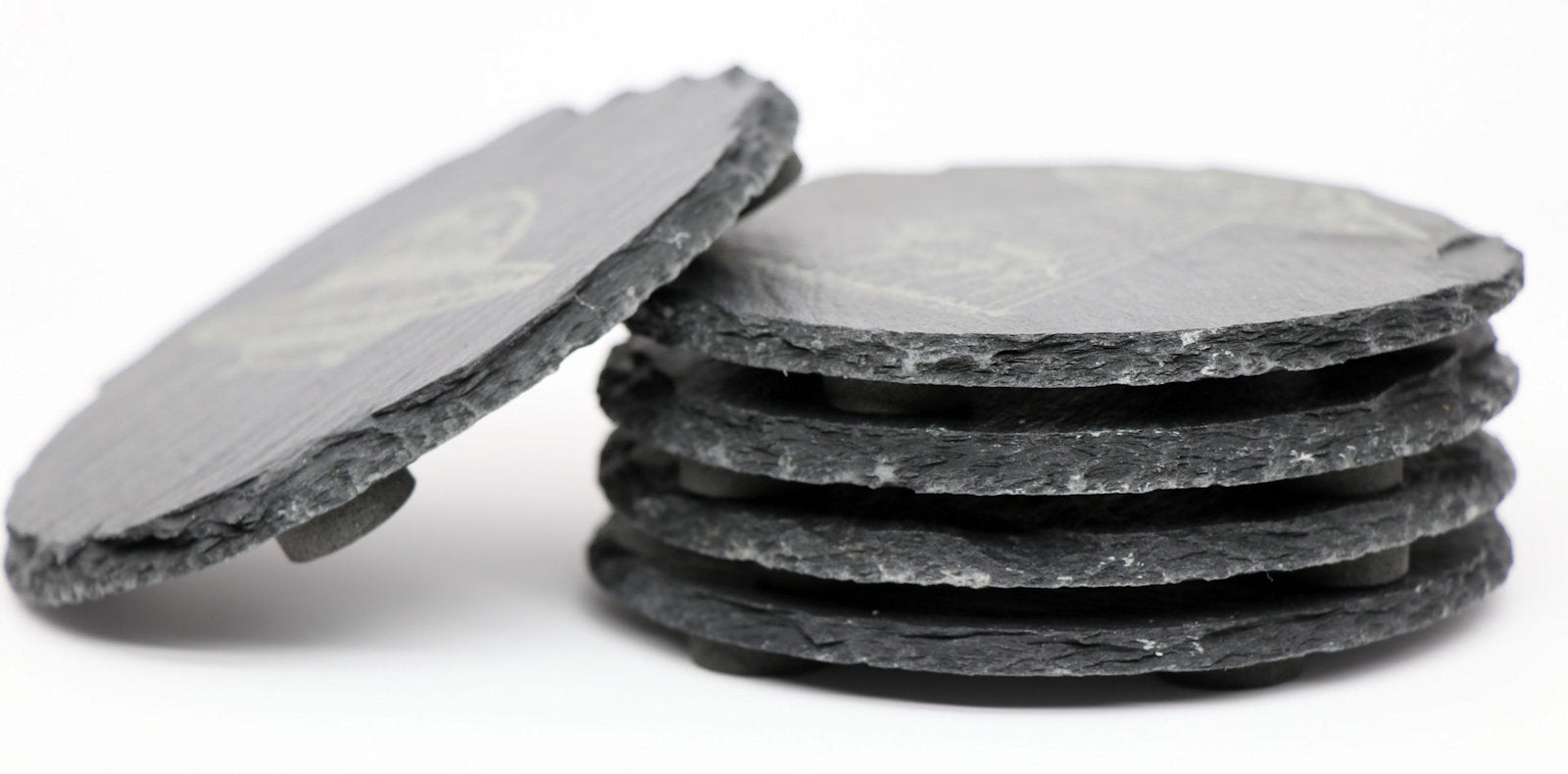 - Slate is strong but brittle, so each coaster will have unique edges and a distinctive finish