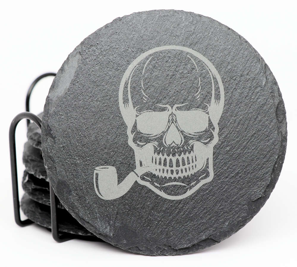 Introducing our Smoking Skulls Coaster Set - Round Slate! These coasters are not only functional but also a great conversation starter. Made from round slate, they provide excellent protection to your table from beverage stains and scratches. With their smoking skulls design, they add a touch of humor and uniqueness to any home decor. Get ready to entertain your guests with these funny and stylish coasters. Protect your table in style and let the good times roll!