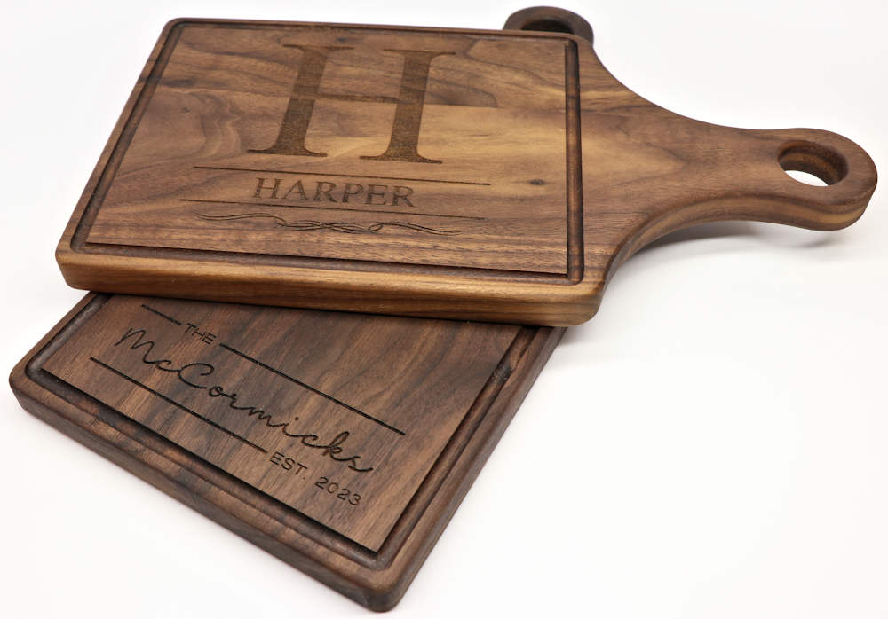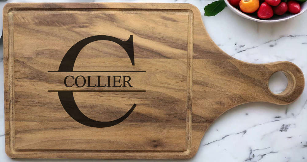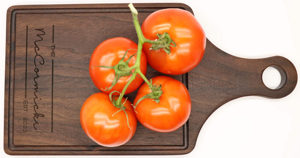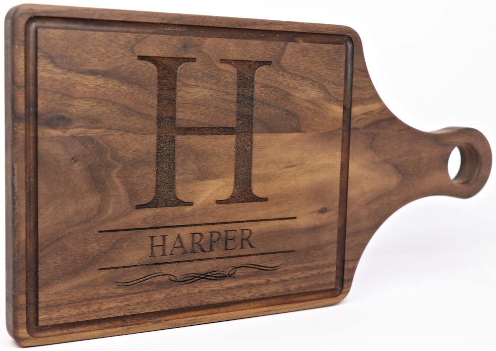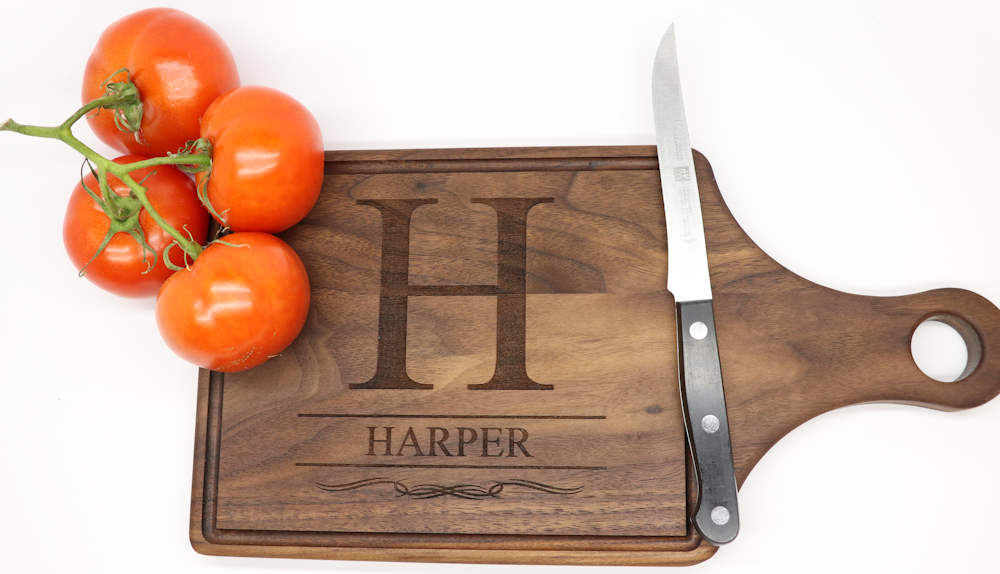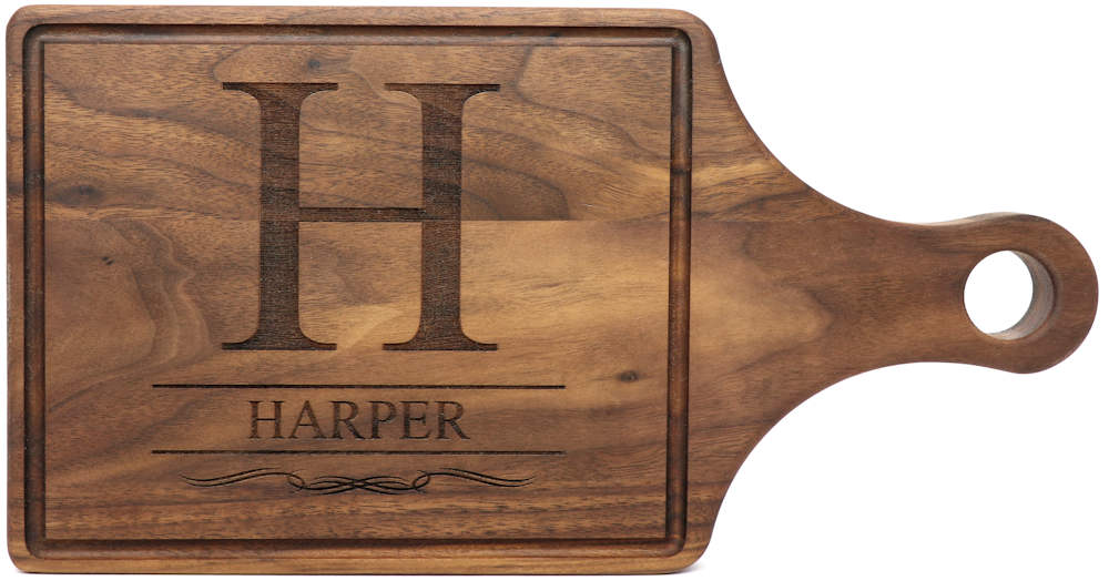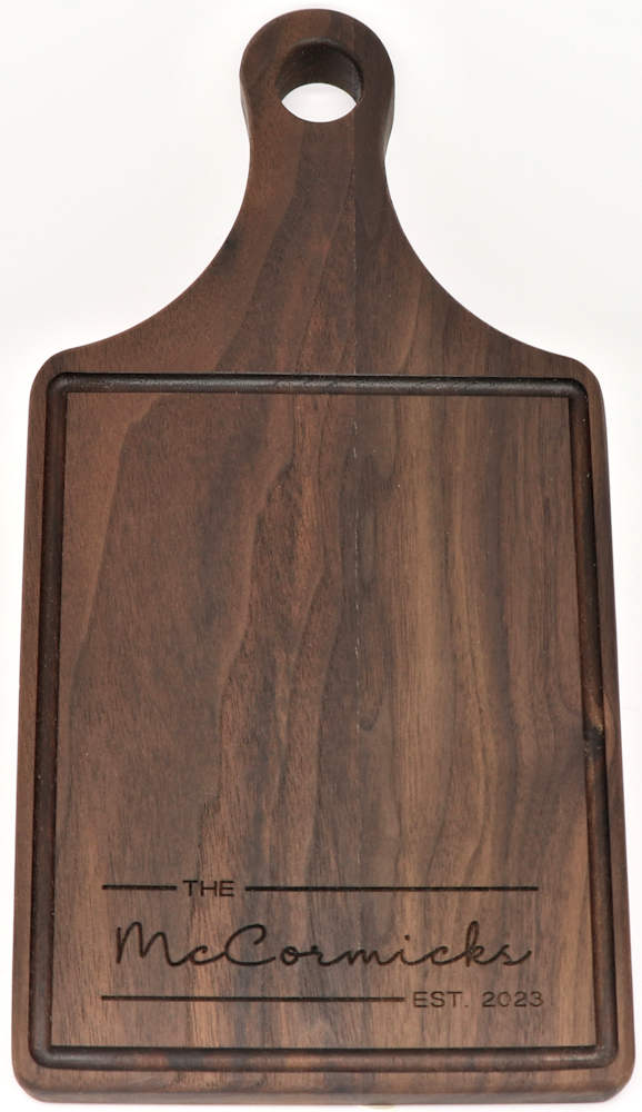 Elevate your kitchen with our Walnut Paddle Style Cutting Board - perfect for any family cook! Made from high-quality walnut, this personalized board adds a touch of elegance to your meal prep. With its unique paddle style and custom family name engraving, it makes a thoughtful and practical gift for any occasion. Upgrade your cooking game today!